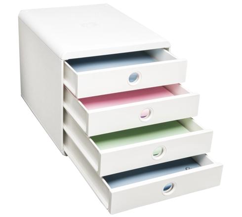 Le Module de classement Pop Box est composé de 4 tiroirs pour classer des documents en format A4 et A4+, des pochettes à élastiques 24x32cm ou des enveloppes grands formats. Ce produit au design sobre et très ergonomique est adapté à un usage bureau, home office ou scolaire.