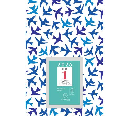 Bloc sous boitier plastique (6,5 x 9,7 cm),collé sur plaque cartonnée imprimée 14,5 x 21,5 cm. Un éphéméride décor tendance.