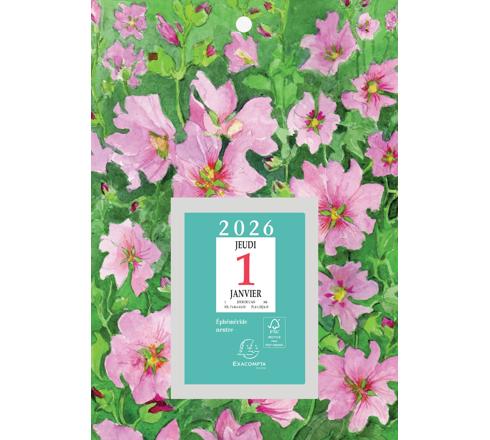 BLOC ÉPHÉMÉRIDE NEUTRE FLEURS (6,5 X 9,7 CM) SUR PLAQUE IMPRIMÉE 18 X 26 CM 2026 - VISUELS ASSORTIS