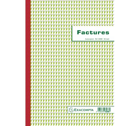 MANIFOLD FACTURES AVEC MENTION TVA 29,7X21CM 50 FEUILLETS TRIPLI AUTOCOPIANTS