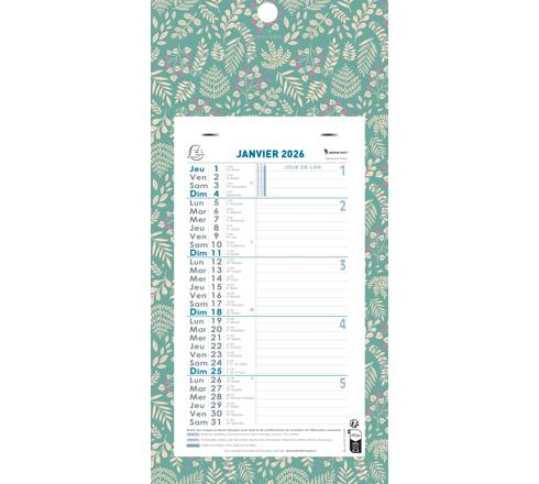 Les + : précision du saint du jour, le numéro de la semaine est bien visible. Pratique : la perforation pour accrocher le calendrier au mur.