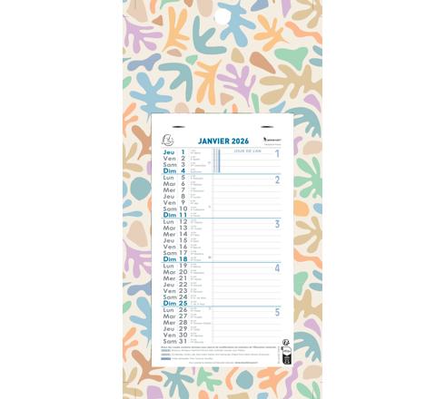 CALENDRIER MENSUEL DÉCOR PAPIER AVEC FEUILLETS DÉTACHABLES 13 X 23 CM SUR SUPPORT PLAQUE IMPRIMÉE 16 X 33 CM 2026 - COULEURS ASSORTIES