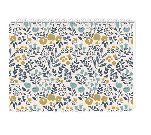 72 feuilles détachables. Papier blanc, impression en bleu doux. Spirale métal.