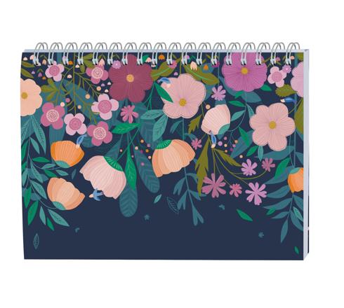 72 feuilles détachables. Papier blanc, impression en bleu doux. Spirale métal.