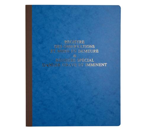 Registre des risques professionnels,conforme à la législation en vigueur. Registre obligatoire en 2 parties : Registre spécial danger grave et imminent et registre des observations et mises en demeure