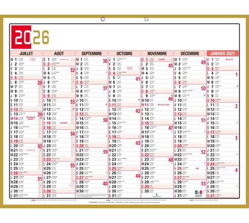 CALENDRIER TRICOLORE NEUTRE 43 X 33,5 CM SEMESTRIEL 2026 - ROUGE, NOIR ET OR
