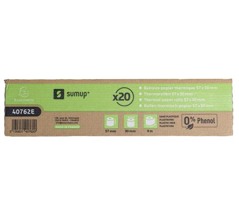 BOBINE POUR TICKETS DE CARTE BANCAIRE 57X30MM - 9M - SUMUP - 1 PLI THERM. 55G/M2 SANS PHÉNOL ET SANS PLASTIQUE - BLANC