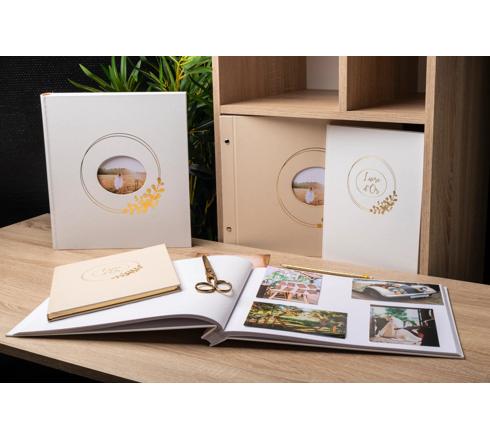 De part ses tons légers et son marquage elliptique et floral aux reflets dorés, le livre d'or Ringflower conviendra parfaitement à votre thème de mariage, qu'il soit champêtre, floral ou classique.