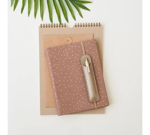 Craquez pour le porte-stylo Eden! Il permet de garder votre agenda ou carnet bien fermé tout en ayant votre stylo toujours à portée de main. Cette solution tout-en-un facilite une organisation efficace, même en déplacement.