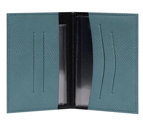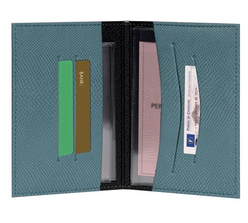 La pochette contient 2 étuis transparents spécifiques pour la carte grise et le permis de conduire (ancien modèle).