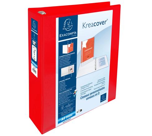 CLASSEUR PP PERSONNALISABLE KREACOVER - 4 ANNEAUX EN D 60MM - A4 MAXI - ROUGE