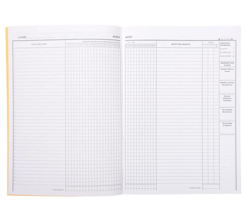 REGISTRE ANNUEL D'APPEL JOURNALIER, 297X210, NOMS À RECOPIER, 24 PAGES - COULEURS ASSORTIES