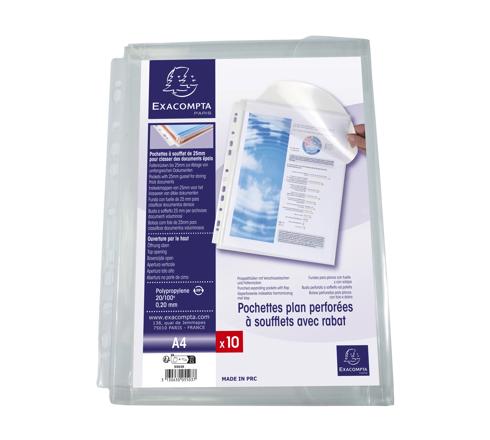 CONDITIONNEMENT : en sachet de 10 pochettes perforées à soufflet avec rabat et scratch - coloris incolore