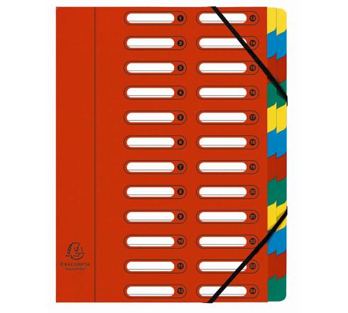 TRIEUR HARMONIKA® À FENÊTRES AVEC ÉLASTIQUES VÉRITABLE CARTE LUSTRÉE 24 COMPARTIMENTS - ROUGE