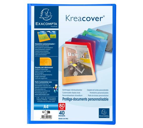 PROTÈGE-DOCUMENTS EN POLYPROPYLÈNE SEMI RIGIDE KREACOVER® OPAQUE 80 VUES - A4 - COULEURS ASSORTIES