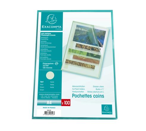 Pochettes coin en polypropylène grainé idéales pour protéger et classer quelques feuillets au quotidien.