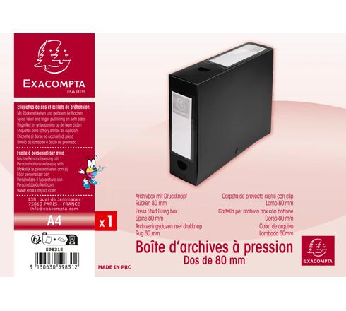 BOITE DE CLASSEMENT À PRESSION DOS 80MM POLYPROPYLÈNE 7/10E OPAQUE - A4 - NOIR