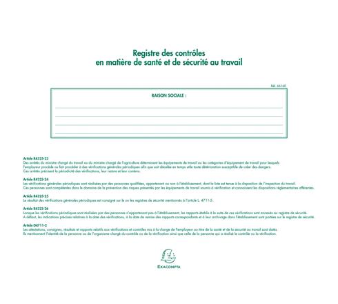 PIQÛRE 24X32CM - REGISTRE DES CONTRÔLES DE SANTÉ ET DE SÉCURITÉ AU TRAVAIL - 20 PAGES
