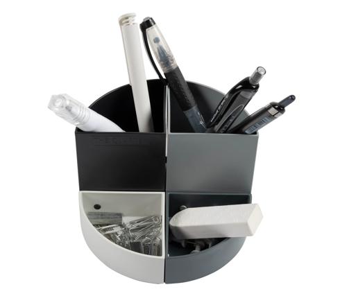 Grâce àSes 4 compartiments de 2 hauteurs différentes vous pourrez ranger tous vos ustensiles les plus usuels. 2 compartiments hauts pour les grands ustensiles,ciseaux, stylos, et 2 compartiments bas pour les petits objets trombones, punaises ...
