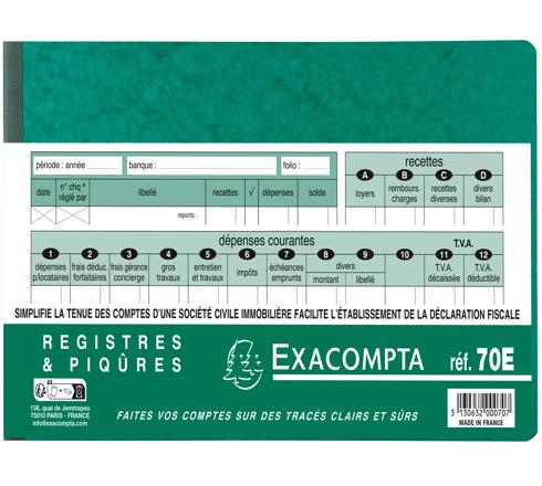La piqûre SCI Compta simplifie la tenue des comptes des Sociétés Civiles Immobilières. Sur la page de gauche, les recettes peuvent être enregistrées sur 4 colonnes identifiées. En page de droite, les dépenses courantes peuvent être ventilées en 9 colonnes + 2 colonnes de TVA (TVA décaissée - TVA déductible). Par double page, les comptes sont clairement notés sur 22 lignes + un total ou sous-total qui peut être reporté sur la double page suivante. Les doubles-pages sont numérotées, et peuvent être datées. Avec 96 pages, les SCI ont à leur disposition un outil complet pour des comptes simplifiés.