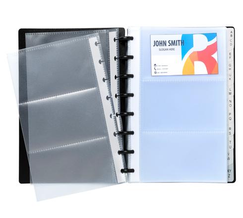 PORTE-CARTES DE VISITE À ANNEAUX ET POCHETTES DÉTACLABLES A5 - NOIR