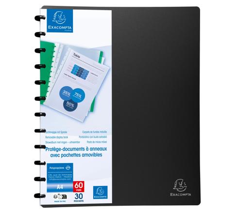 PROTÈGE-DOCUMENTS À ANNEAUX ET POCHETTES DÉTACHABLES 60 VUES - A4 - NOIR