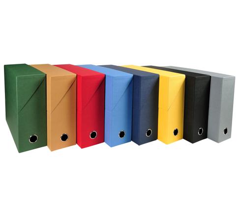 En carton rigide recouvert de papier toilé teinté, cette boite transfert est très pratique pour archiver proprement tous les dossiers volumineux.