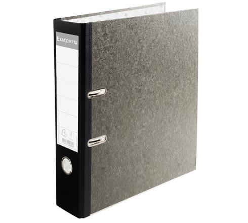 CLASSEUR À LEVIER PAPIER MARBRE GRIS DOS DE 80MM PREM'TOUCH - DOS COULEURS - A4. - GRIS-DOS NOIR