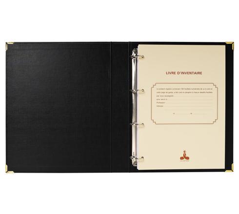 Classeur juridique noir - dos de 49mm - 4 anneaux - Registre Livre d'inventaire et livre journal, qualité Premium coins dorés