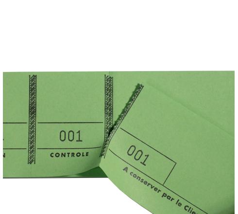 Chaque feuillet est composé de 3 coupons dont deux détachables grâce aux microperforations : souche, contrôle et client.