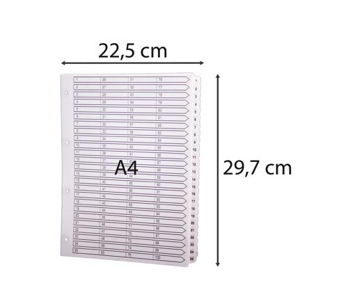 INTERCALAIRES IMPRIMÉS À TOUCHES PLASTIFIÉES - 100 TOUCHES 1 À 100 - A4 - BLANC