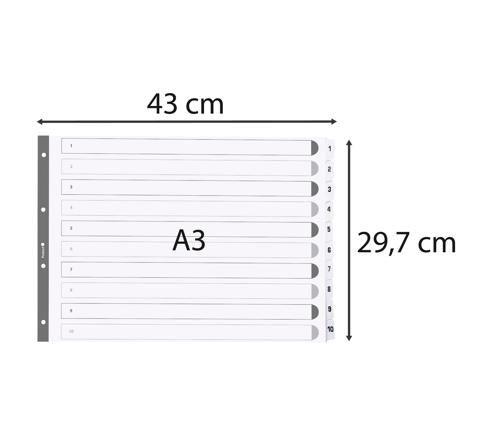 INTERCALAIRES IMPRIMÉS À TOUCHES PLASTIFIÉES - 10 TOUCHES 1 À 10 - A3 - BLANC