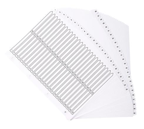 INTERCALAIRES IMPRIMÉS À TOUCHES PLASTIFIÉES - 50 TOUCHES 1 À 50 - A4 - BLANC